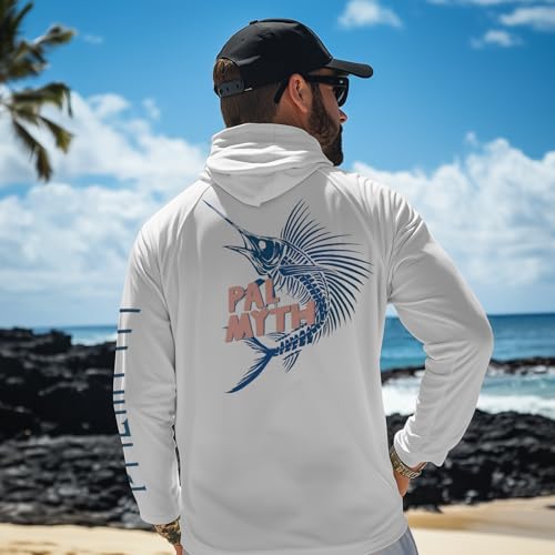 HOT ! Palmyth Fishing Shirts for Men Long Sleeve UPF 50+ Sun Protection Fishing Hoodie with UV Vented Neck Gaiter