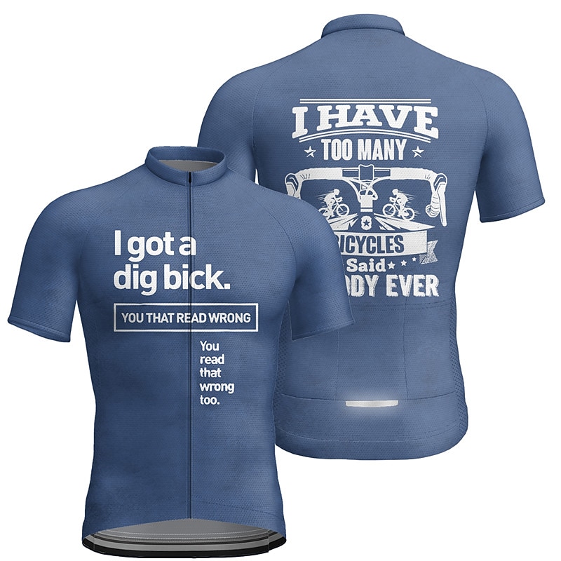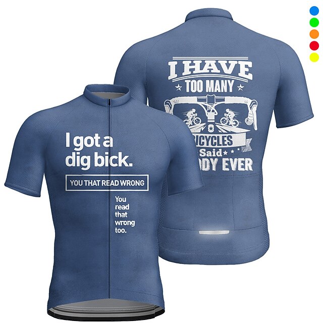 Men's Cycling Jersey Letter & Number Short Sleeve Bike Jersey Top with 3 Rear Pockets Mountain Bike MTB Road Bike Cycling Quick Dry Reflective Strips Back Pocket Moisture Wicking Sports Blue Green 11