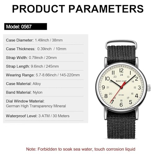 • Comfortable Fit: The nylon strap of this watch is adjustable, allowing you to find the perfect fit for your wrist. With a watch length of 245mm and a wearing range of 145mm (min) to 220mm (max), it can accommodate a wide range of wrist sizes. Weighing only 39g, it is lightweight and won't cause any discomfort or fatigue, even when worn for extended periods.