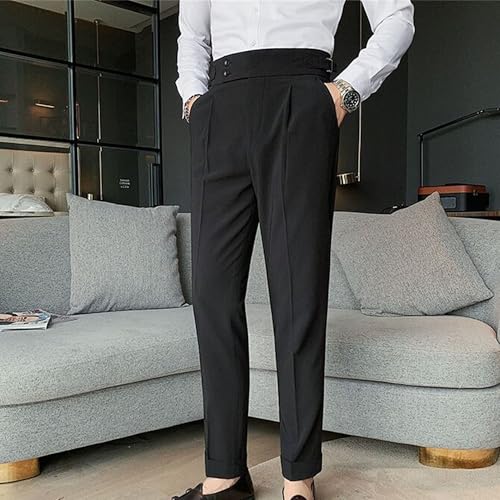DGHM-JLMY Men Fold Pleated Crop Suit Pants Casual Comfortable High Waist Trousers Work Office Business Trousers with Pockets 1