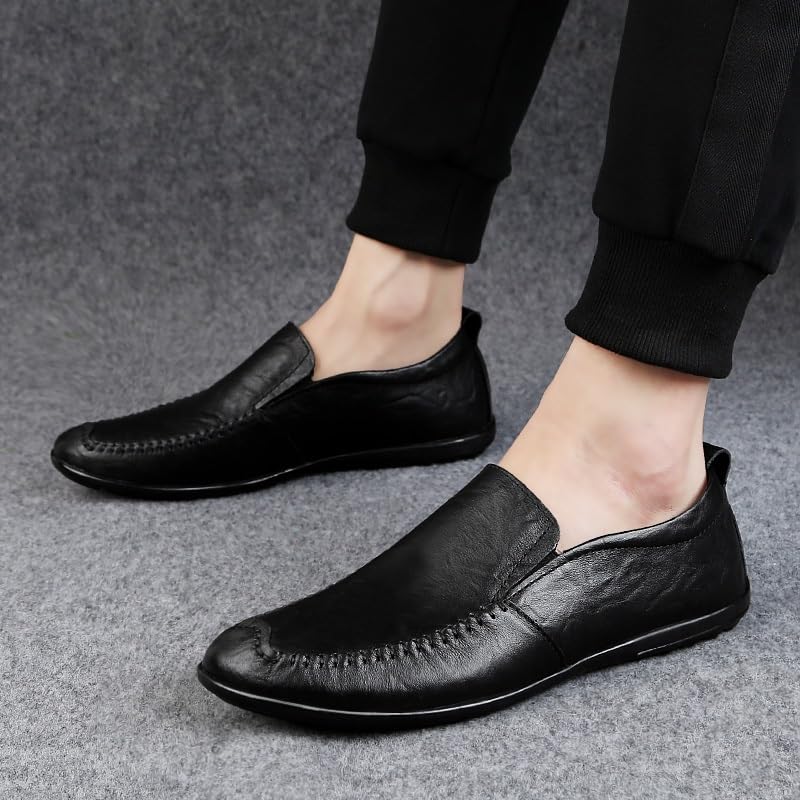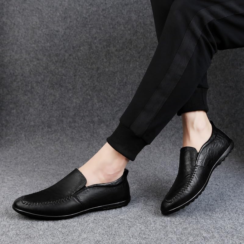 HOT ! Men's Loafers Round Toe Leather Loafer Shoes Flexible Lightweight Comfortable Casual Slip-on