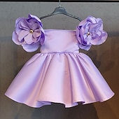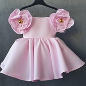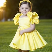 More information about Kids Girls' Dress Floral Solid Colored Short Sleeve Birthday Ruched Cute Princess Polyester Above Knee A Line Dress Summer Spring 2-6 Years White Yellow Pink