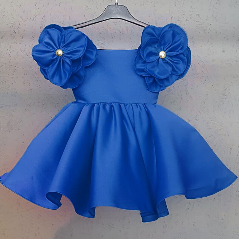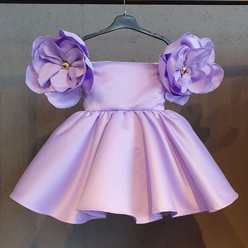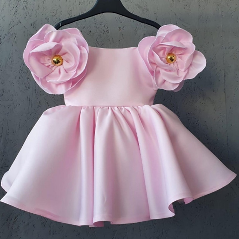 HOT ! Kids Girls' Dress Floral Solid Colored Short Sleeve Birthday Ruched Cute Princess Polyester Above Knee A Line Dress Summer Spring 2-6 Years White Yellow Pink
