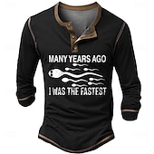 HOT ! Men's Long Sleeve Henley Shirt - Funny "Many Years Ago I Was The Fastest" Sperm Graphic