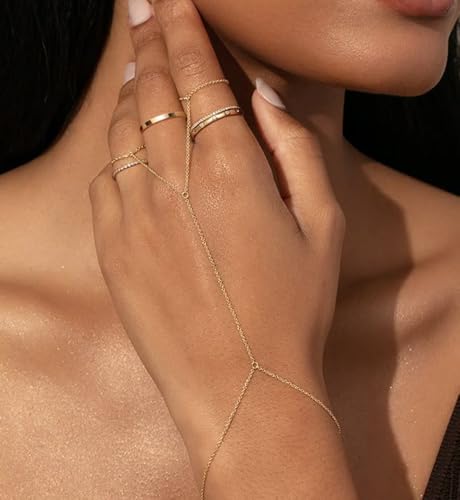 iF YOU Gold Rings for Women Non Tarnish, Trendy 14K Gold Plated Jewelry for Women Dainty Stackable Cubic Zirconia Knuckle Ring Set Statement Chunky Stacking Band Rings Size 5 6 7 8 9 4