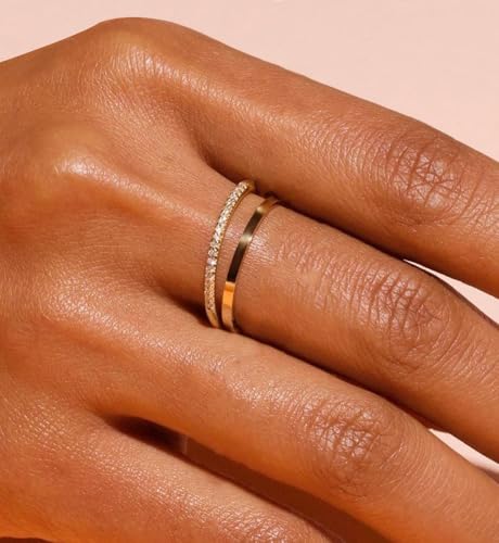 HOT ! iF YOU Gold Rings for Women Non Tarnish, Trendy 14K Gold Plated Jewelry for Women Dainty Stackable Cubic Zirconia Knuckle Ring Set Statement Chunky Stacking Band Rings Size 5 6 7 8 9