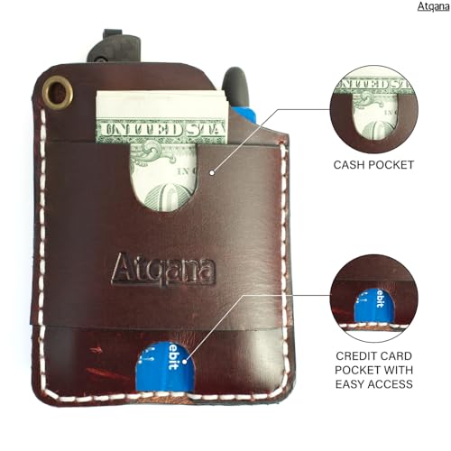 EDC Pocket Wallet (Premium Leather) - Handmade EDC Pocket Organizer Pouch with Folding Knife Slip, Tactical Pen Holder, Cash Pocket and Credit Card Holder (Extra Dark Brown) 6