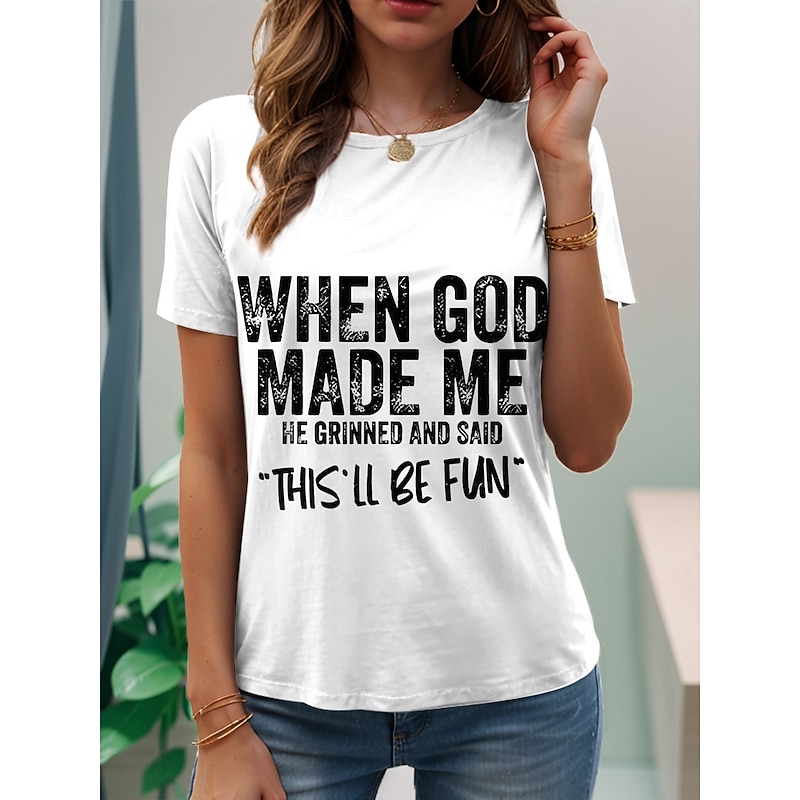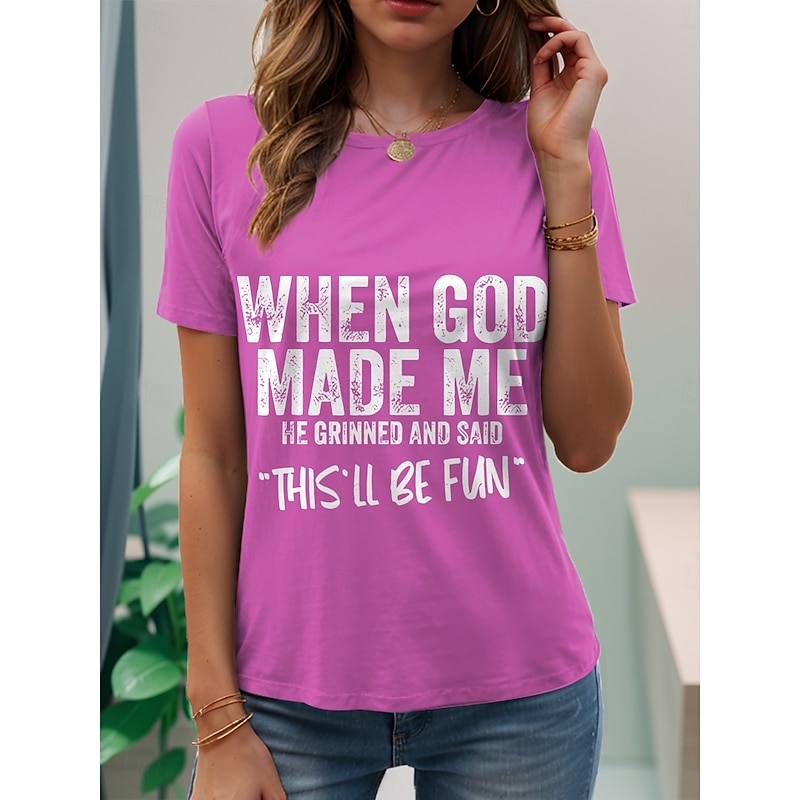 HOT ! Women's T Shirt Graphic Letter Stylish Casual Short Sleeve Round Neck Regular Tops Daily Weekend Print Black White Pink Blue Purple Summer Spring