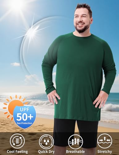 Mens Big and Tall Long Sleeve Swim Shirt Sun Protection UPF 50+ Rash Gard Quick Dry T-Shirt (2XL-8XL) 5