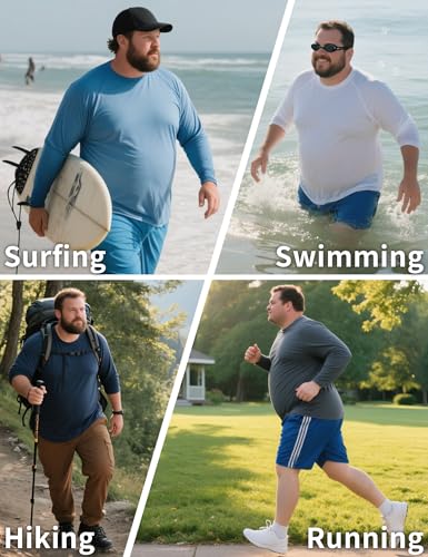 • OCCASIONS: The big and tall rashguard shirts are perfect for surfing, swimming, boating, fishing, sailing, hiking, running, beach, water sports, and any other outdoor activities.