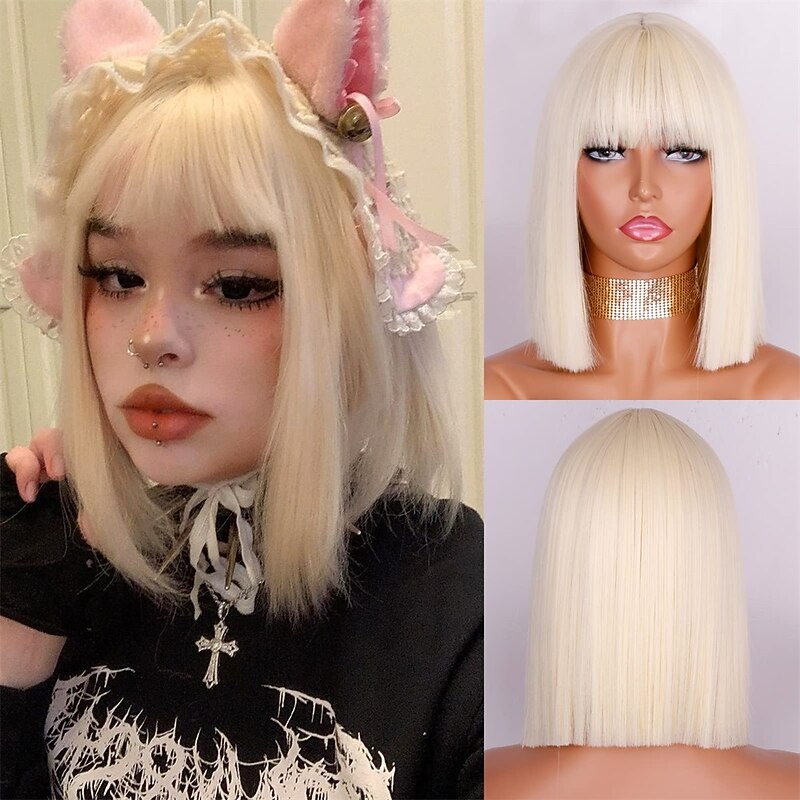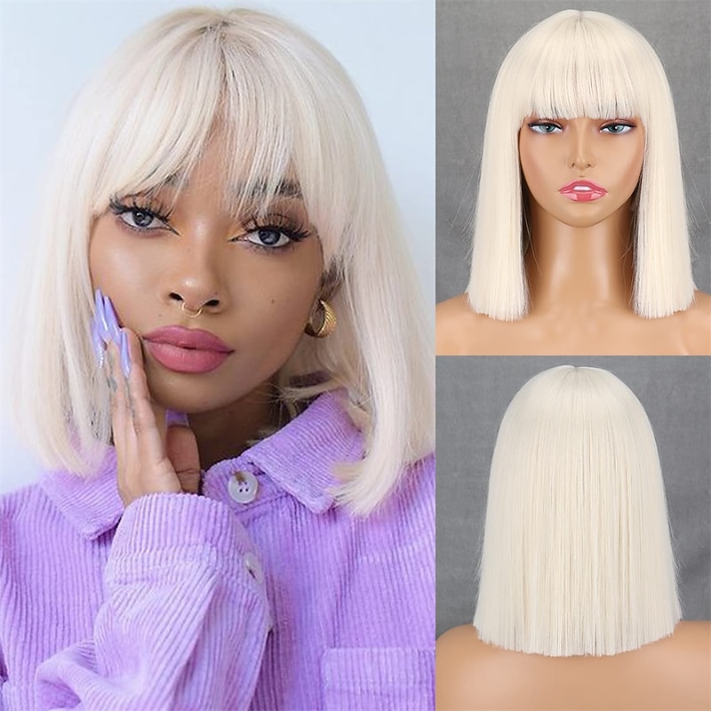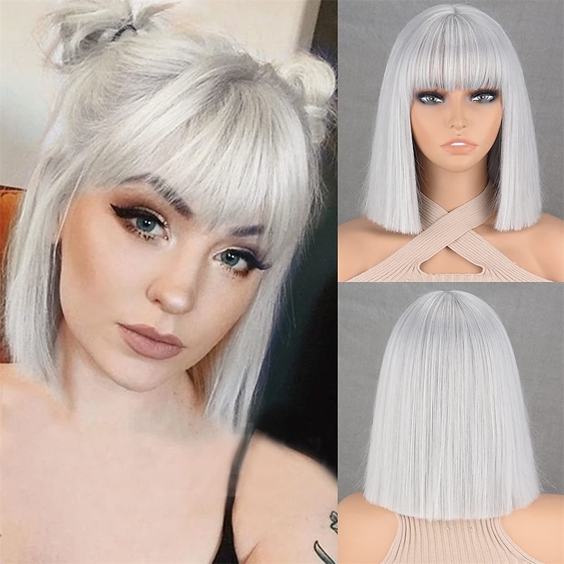 $21.99 - Short Bob White Wig with Bangs Silver White Short Wigs for Women Straight Bob White Cospaly Hair Wig for Daily Party Halloween 2025. Shop for cheap Synthetic Trendy Wigs online? Buy at lightinthebox.com on sale today!