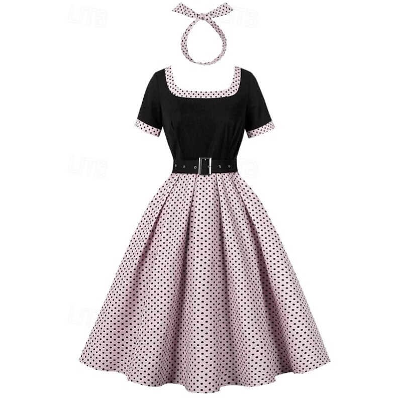 More information about Retro Vintage 1950s Rockabilly Midi Swing Dress Flare Dress With Belt with Pockets Polka Dot Fancy Dress Women's Masquerade Vacation Casual Retro Theme Party Adults' Dress Headband Spring & Summer
