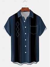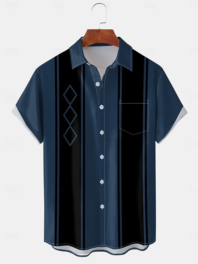 More information about Men's Color Block Line Bowling Shirt Button Up Shirt Short Sleeves Artistic Casual Comfortable Outdoor Vacation Street Spring & Summer Shirt Collar Printing Blue