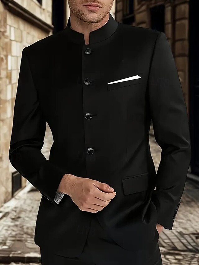 More information about Men's Blazer Business Cocktail Party Wedding Party Fashion Casual Spring Fall Polyester Plain Pocket Buttons Comfortable Single Breasted Blazer Black