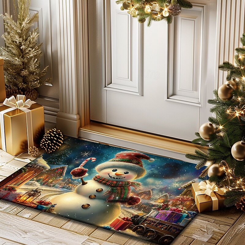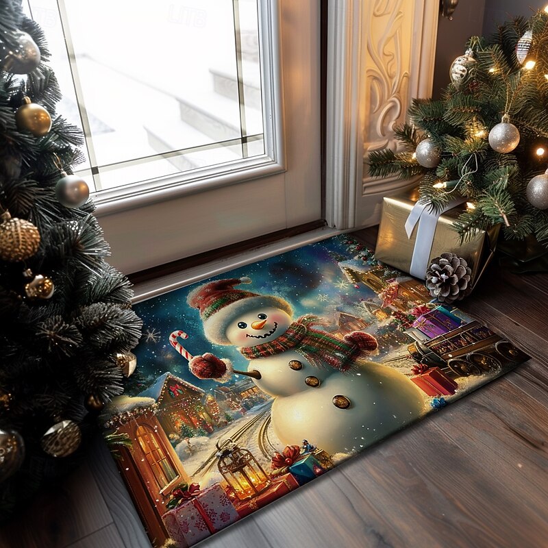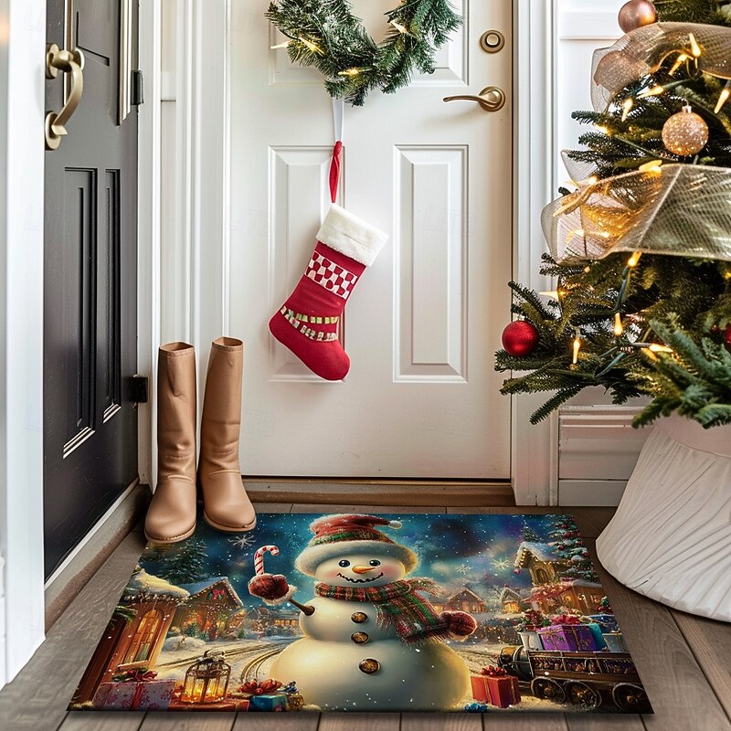 Christmas Decoration Doormat Xmas Town Snowman Kitchen Mat Floor Mat Non-Slip Area Rug Oil Proof Rug Indoor Outdoor Mat Bedroom Decor Bathroom Mat Entrance Rug 10