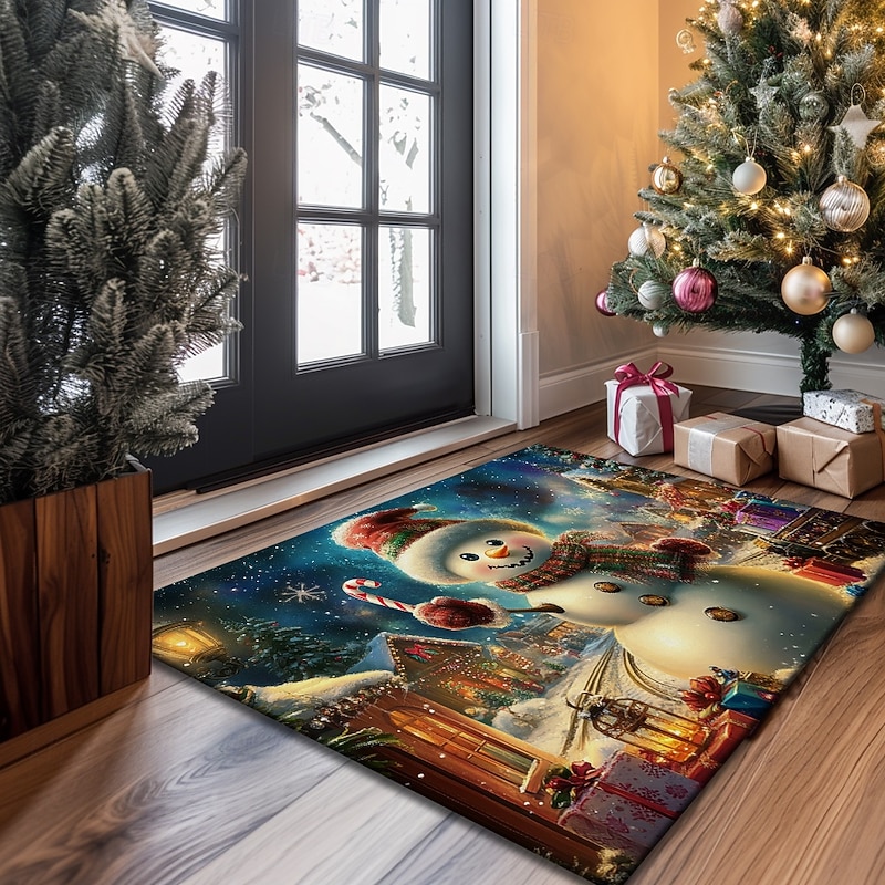 HOT ! Christmas Decoration Doormat Xmas Town Snowman Kitchen Mat Floor Mat Non-Slip Area Rug Oil Proof Rug Indoor Outdoor Mat Bedroom Decor Bathroom Mat Entrance Rug