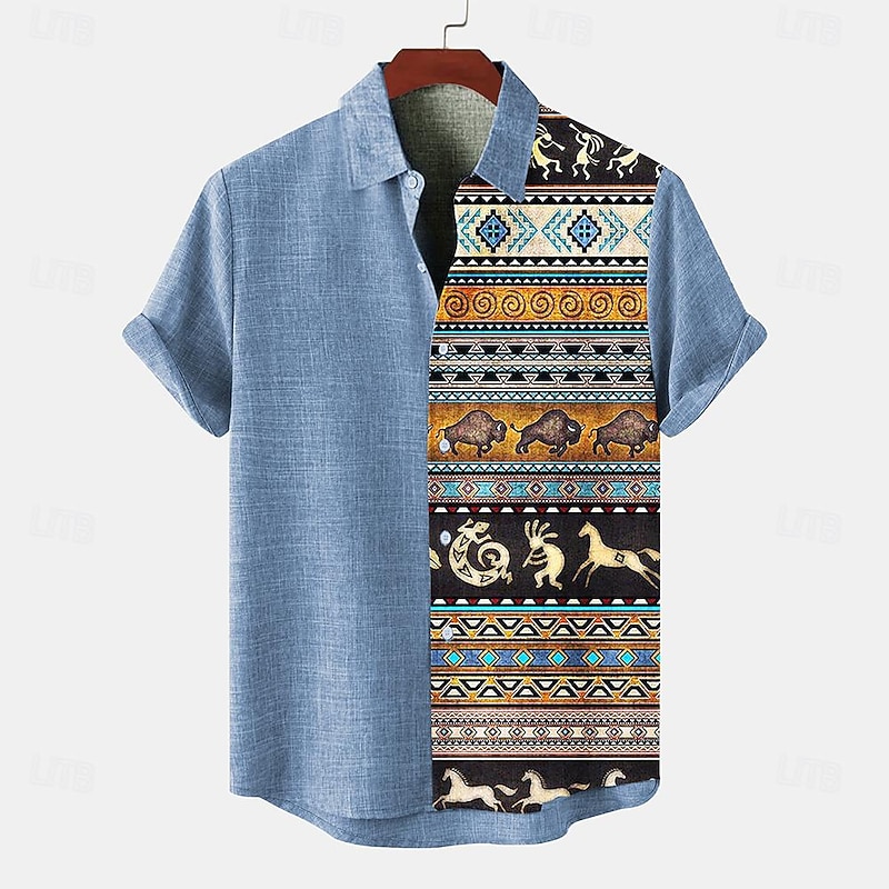More information about Men's Shirt Linen Shirt Retro Shirts Vintage Shirt Ethnic Shirt Tribal Daily Blue Green khaki Short Sleeve Turndown Summer Spring Clothing Apparel