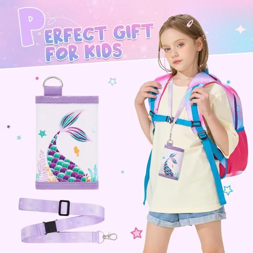 Kids Wallet - Mermaid Wallet for Girls Ages 4-12 Trifold Toddler Wallet with Lanyard Zippered Coin Pocket Card Holders Wallets Kids Purse Wallet Women Christmas Birthday Gift for Children 3