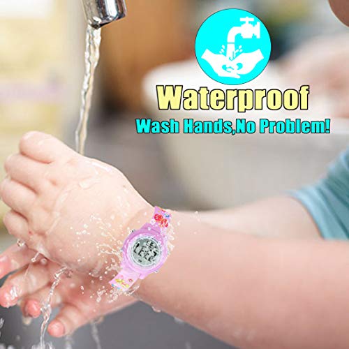 Kids Watch for Boys Girls 3D Cute Butterfly Cartoon Toddler Watch Digital Silicone Band Alarm Stopwatch Digital Child Wristwatch 50M Waterproof Purple 5
