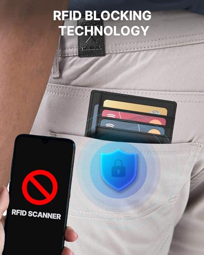 Mens Slim Wallet, Premium Crazy Horse Leather RFID-Blocking Front Pocket Wallet Holder, Black 5