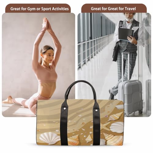 HOT ! Beach Shell Starfish Travel Duffel Bag for Women Men, Ocean Starfish Sport Tote Gym Bag Foldable Weekender Overnight Bag Waterproof Carry On Luggage Bag