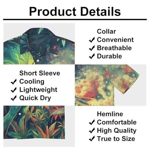 More information about Green Aliens Weed Hawaiian Shirt for Men Button Down Short Sleeve Shirt Summer Top for Beach Party