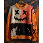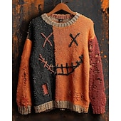 More information about Men's Pullover Sweater Jumper Knit Sweater Ribbed Knit Regular Tops Knitted Print Pumpkin Crew Neck Halloween Vacation Daily Wear Clothing Apparel Drop Shoulder Fall Winter Pumpkin S M L