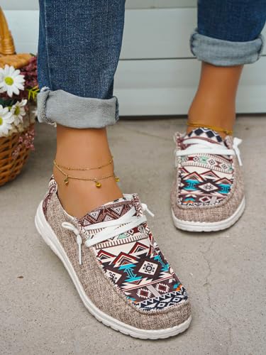 Unisex-Adult Aztec Lightweight Lace-Up Canvas Loafers Sneakers Shoes Wide Width Feet Outdoor Slip-on Flat Shoes Low Top Shoes Summer Casual Gowalk Shoes for Women Men, US Size 6-11 4