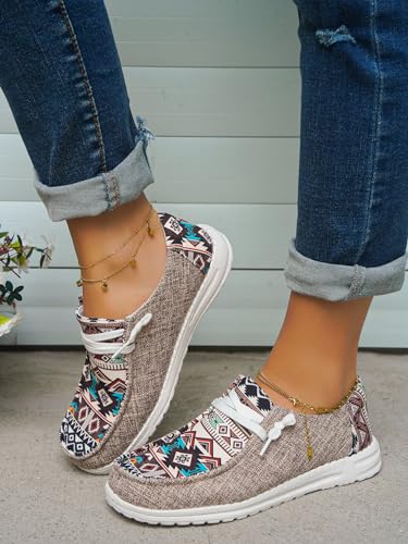 Unisex-Adult Aztec Lightweight Lace-Up Canvas Loafers Sneakers Shoes Wide Width Feet Outdoor Slip-on Flat Shoes Low Top Shoes Summer Casual Gowalk Shoes for Women Men, US Size 6-11 2
