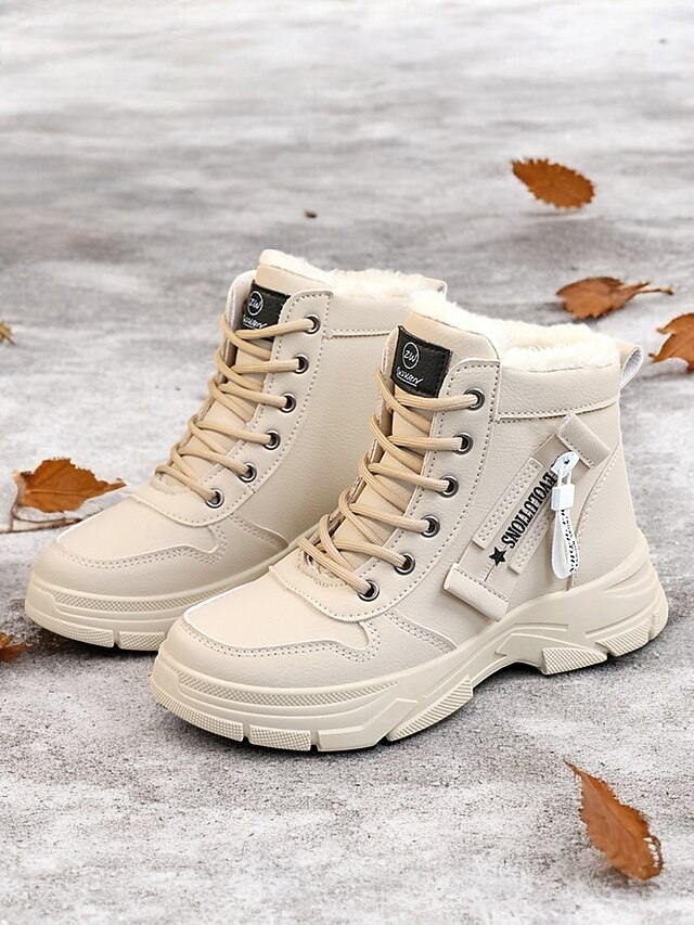 Women's Lace-Up Ankle Boots with Warm Fur Lining – Stylish Beige Winter Boots for Outdoor Cold Weather Comfort 1