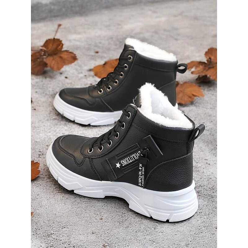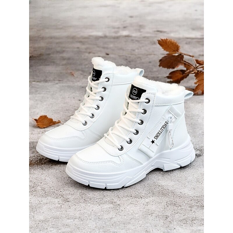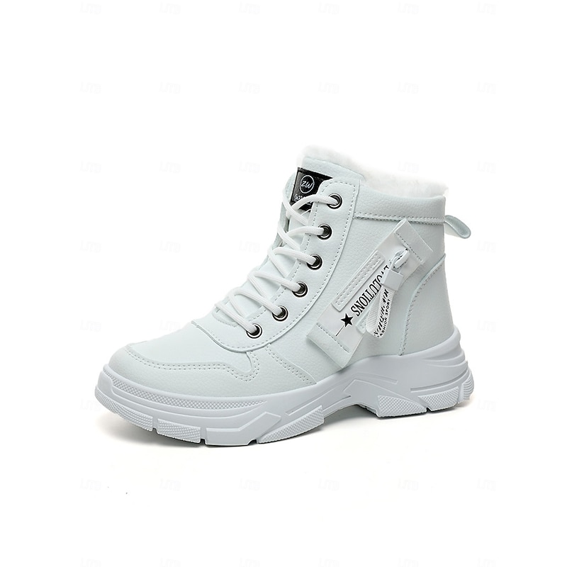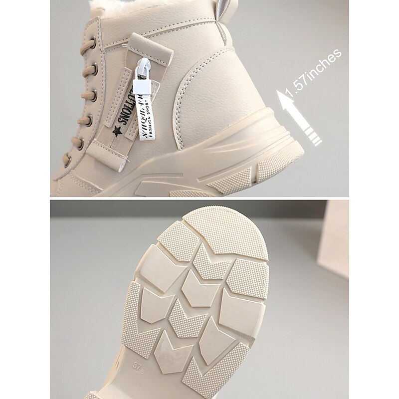 Highlights [Fabric & Material] : Crafted from premium faux leather, these women's ankle boots offer a sleek and stylish appearance. The high-quality synthetic material ensures durability while maintaining a modern and polished finish. [Fit & Design] : Structured with a contemporary flat heel and a round toe design, these boots provide comfort for all-day wear. The interior is lined with plush faux fur, offering exceptional warmth and snugness during colder months. [Design Highlights] : These boots feature a sturdy lace-up system, allowing for a secure and customizable fit tailored to individual preferences. The matching laces seamlessly blend with the overall aesthetic, complemented by padded collars and tongues for enhanced comfort. The robust rubber outsole ensures excellent grip and stability on various terrains, enhancing safety in winter conditions. [Occasions] : Perfect for daily wear, these boots are a versatile choice suited for both casual outings and outdoor winter activities. Whether you’re walking through snowy streets or enjoying a relaxed weekend, they blend fashion with functionality. [Size Range] : Available in various sizes from US5.5 / EU35 / UK3.5 to US10.5 / EU42 / UK8.5, catering to a broad range of foot sizes for a perfect fit.