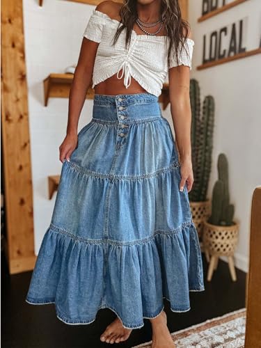 • Size: Solid Color Summer Trendy Fashion Clothes for Women available in S/ M/ L/XL. Please refer to our size chart before your ordering. Bohemian Ruffle Denim Maxi Skirts for women, girls, teen