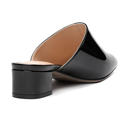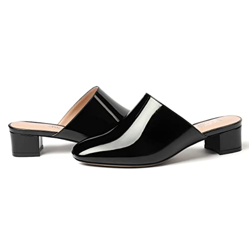 MODENCOCO Women's Slip On Square Toe Casual Patent Chunky Low Heel Comfortable Pumps Slide Mules 1.5 Inch 1