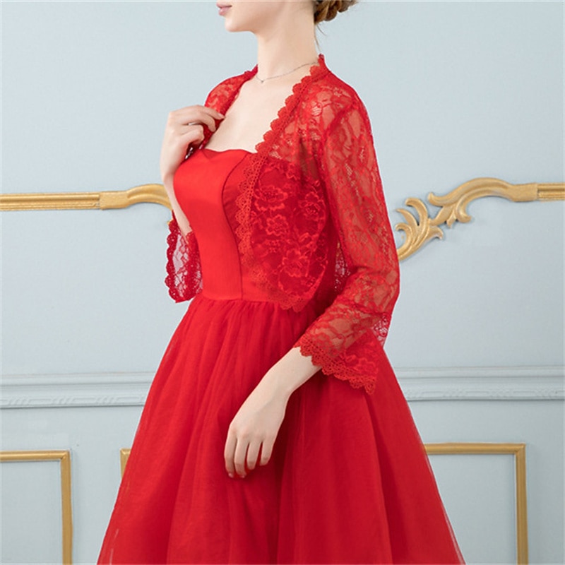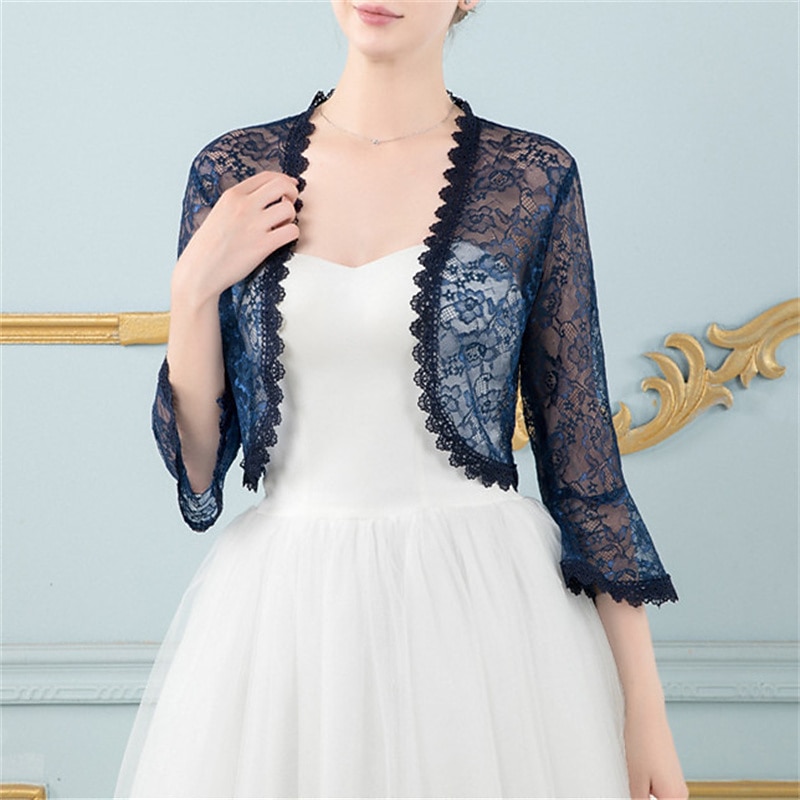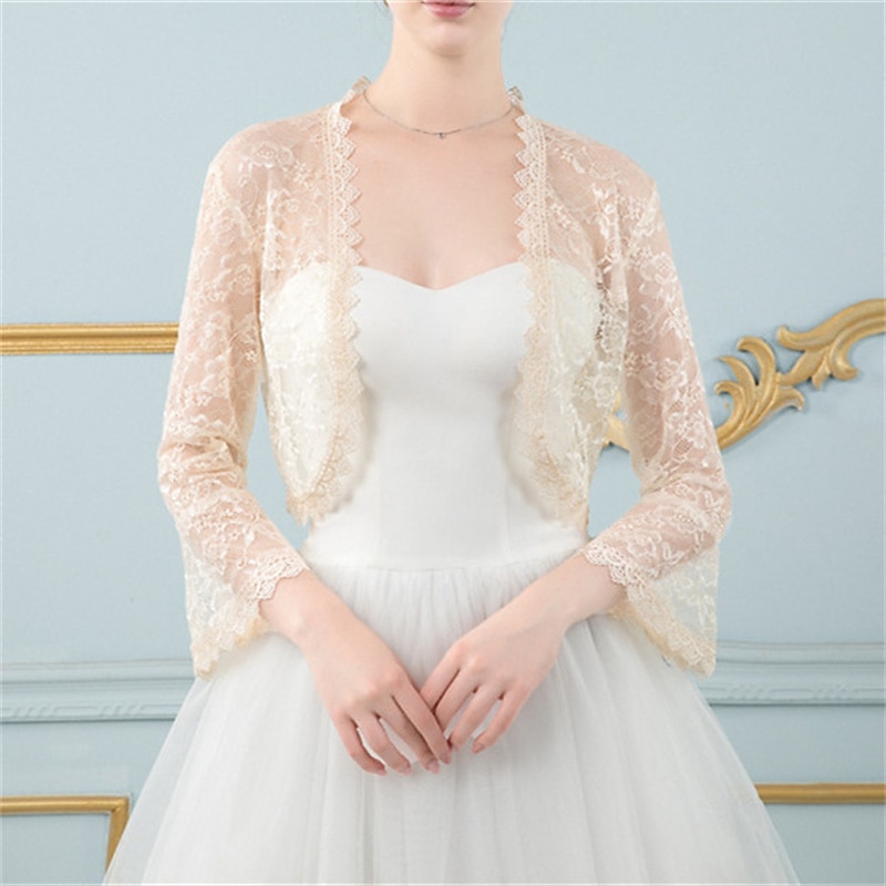 Shawls Women's Wrap Bolero Elegant Bridal Long Sleeve Lace Wedding Wraps With Flower For Wedding Spring & Summer 12