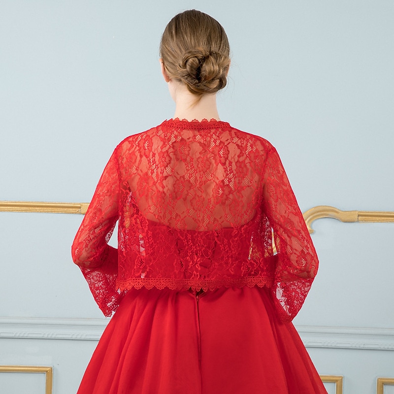 More information about Shawls Women's Wrap Bolero Elegant Bridal Long Sleeve Lace Wedding Wraps With Flower For Wedding Spring & Summer