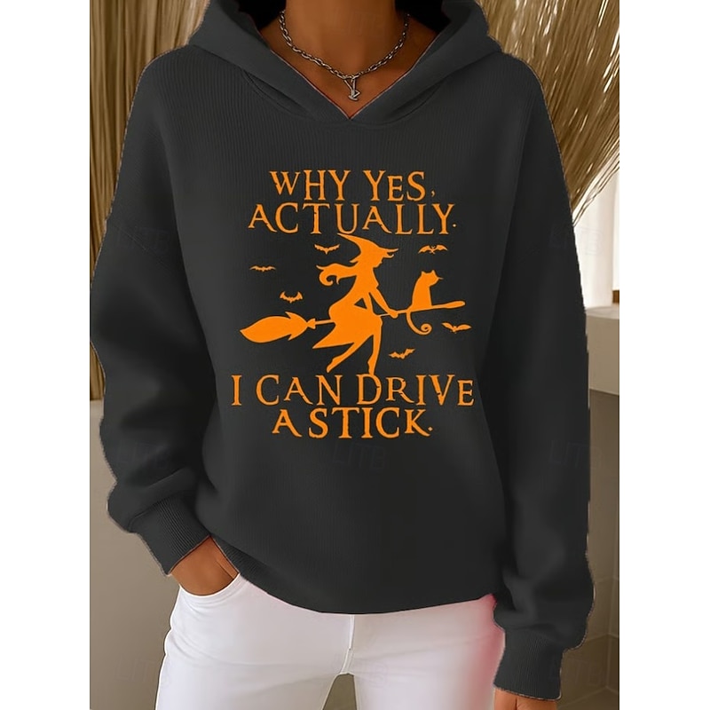 More information about Halloween Women's Pullover Hoodie Sweatshirt Monster Graphic Witch Vintage Fashion Western Long Sleeve Hooded Street Dailywear Holiday Print Front Pocket Black Pink Purple Orange Green Fall
