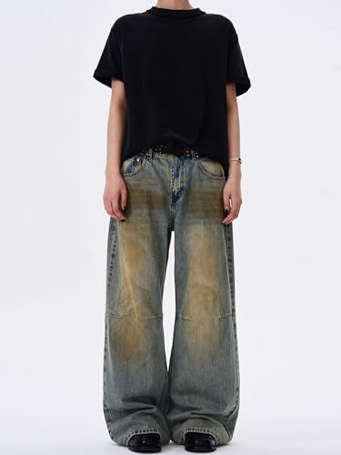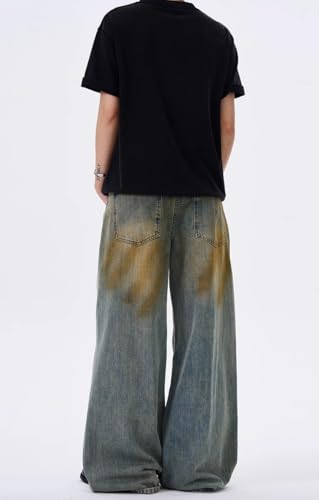GUOYUXIAO Men's Jeans American-Style Retro Denim Pants Floor-Length Straight-Leg Long Trouser for Men 7