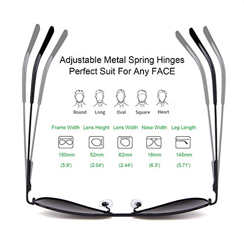 • PRODUCT DIMENSION – Lens Width: 62 mm(2.44 inches) | Lens Height: 52 mm( 2.04 inches) | Temple Length: 145 mm(5.7 inches) | Nose Bridge: 18 mm(0.7 inches)