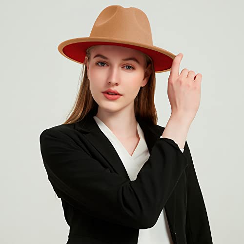 Wide Brim Fedora Hats for Women Men Two Tone Dress Hat Felt Panama Hat in Two Audlt Size 5