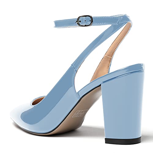 WAYDERNS Women's Slingback Patent Ankle Strap Pointed Toe Block High Heel Pumps Shoes 3 Inch 5