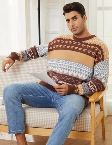 Gihuo Men Vintage Striped Sweater Grandpa Fall Winter Pullover Long Sleeve Crewneck Jumper Knit Christmas Sweater Tops 5