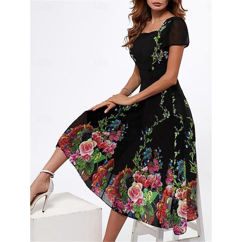 More information about Women's Casual Dress Floral Print Square Neck Midi Dress Vacation Short Sleeve Summer