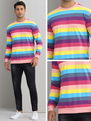 Lars Amadeus Rainbow Stripes Sweatshirt for Men's Crew Neck Multicolor Striped Pullover Sweatshirt 3