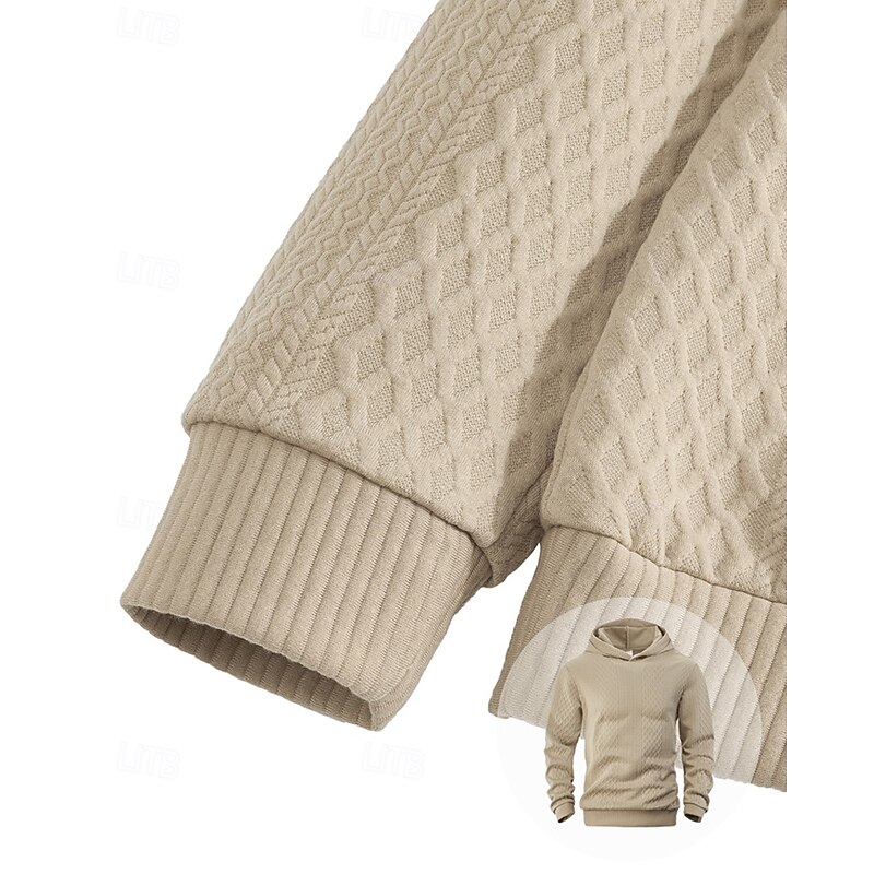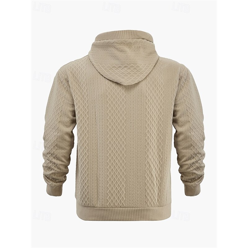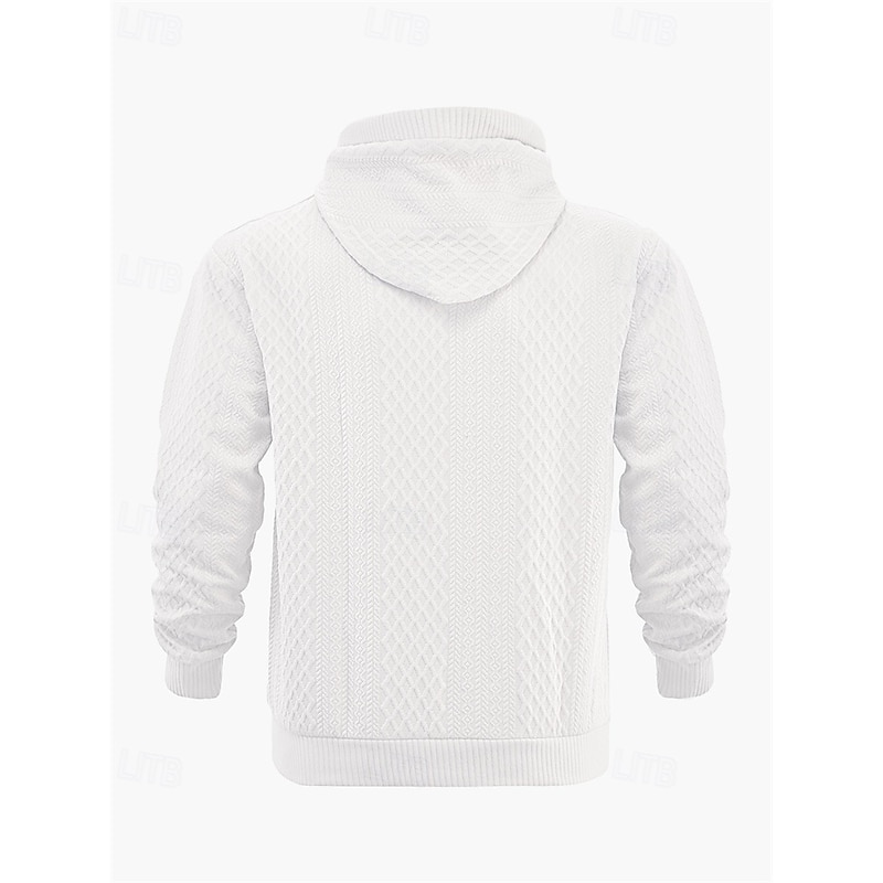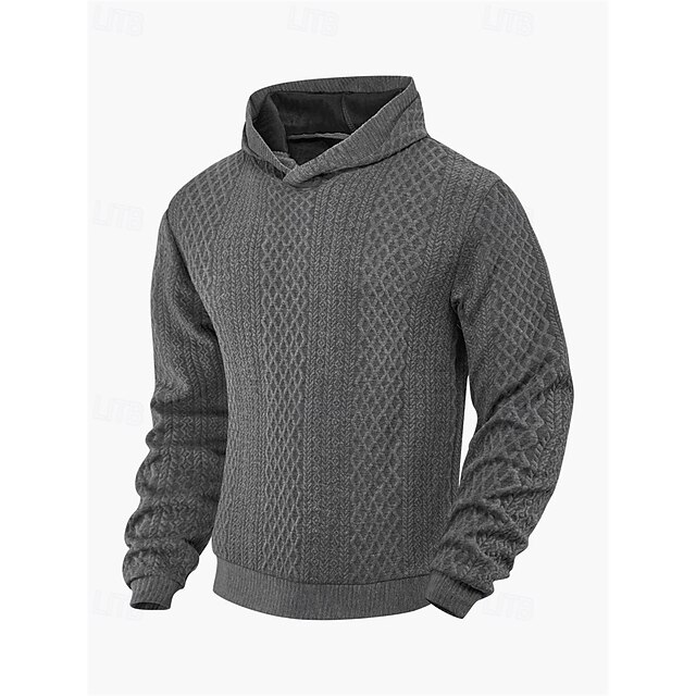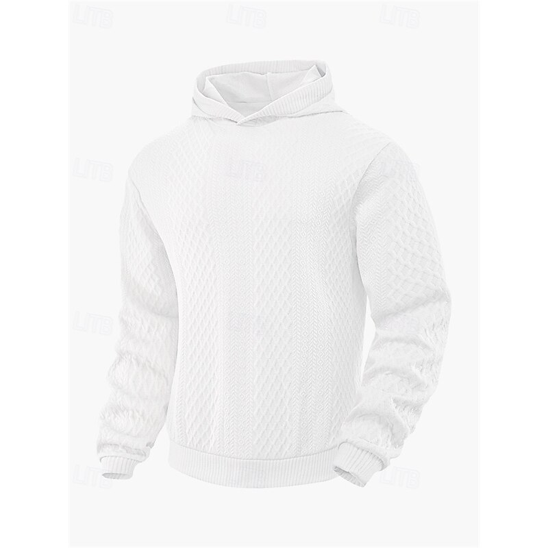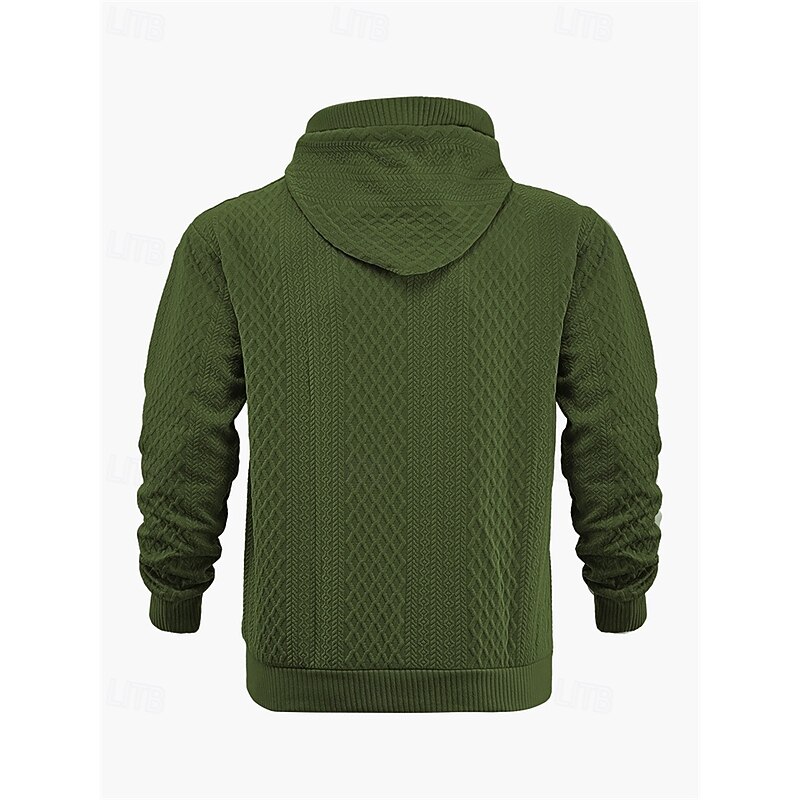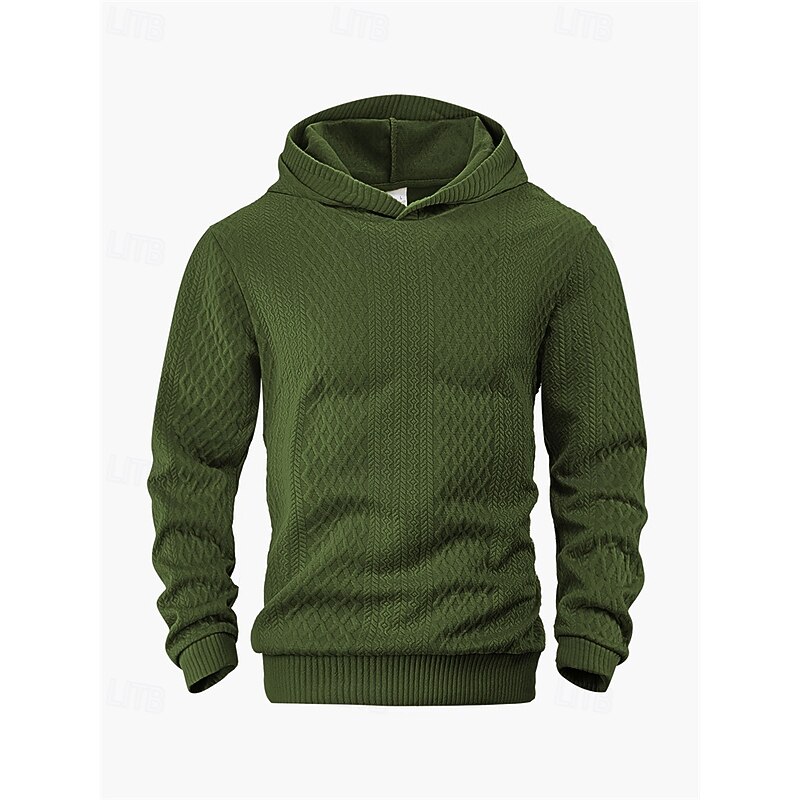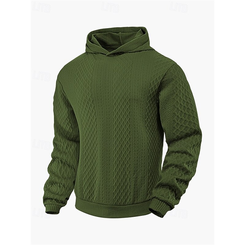 More information about Men's Hoodie Black White Army Green Khaki Gray Hooded Plain Jacquard Ribbed Textured Knit-texture Sports & Outdoor Daily Holiday Polyester Streetwear Basic Casual Spring Autumn / Fall Clothing Apparel
