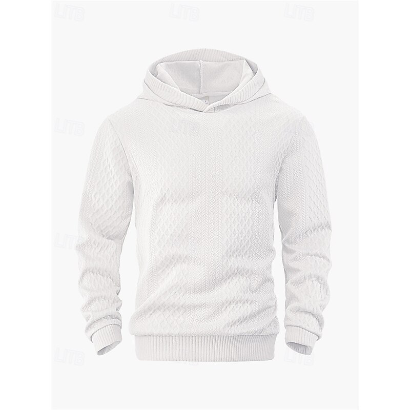 HOT ! Men's Hoodie Black White Army Green Khaki Gray Hooded Plain Jacquard Ribbed Textured Knit-texture Sports & Outdoor Daily Holiday Polyester Streetwear Basic Casual Spring Autumn / Fall Clothing Apparel