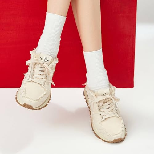 • Premium Material: These platform sneakers for women feature a mesh fabric lining and high-elasticity PU insoles covered with cow leather, keeping your feet cool and comfortable during intense exercise. The cow leather and denim upper of our women's chunky sneakers ensures durability