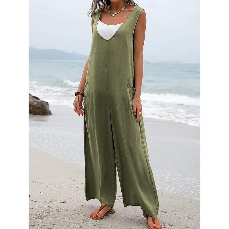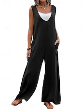 More information about Women's Normal Overall Streetwear Solid Color Sleeveless V Neck Pocket Street Daily Regular Fit Black Pink Green Summer