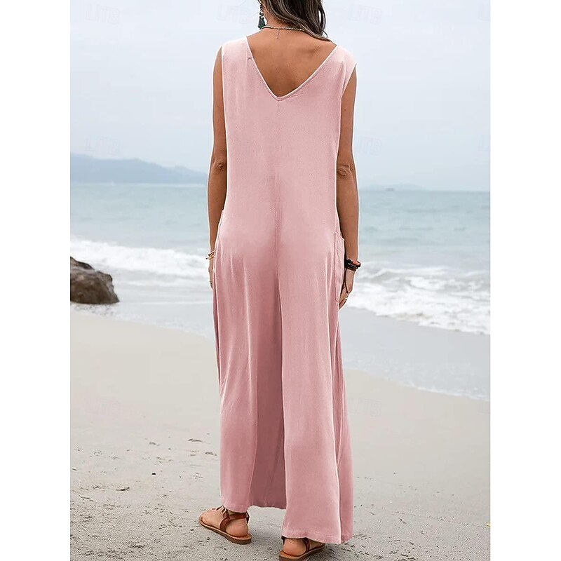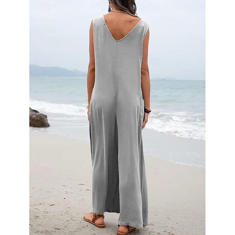 : Crafted from breathable polyester, this women's sleeveless jumpsuit offers a lightweight feel, perfect for warm summer days. With its slight micro-elastic property, it provides a comfortable fit that moves with you throughout the day.