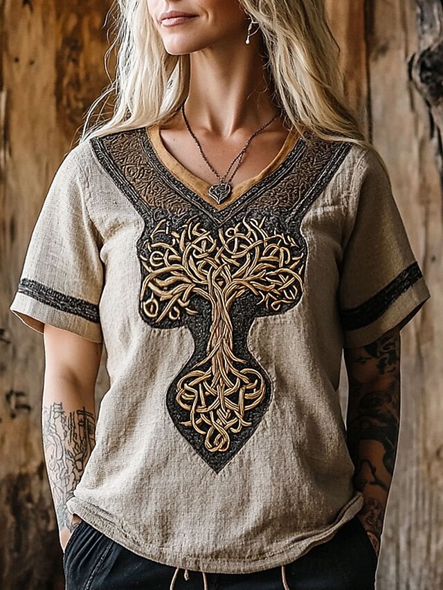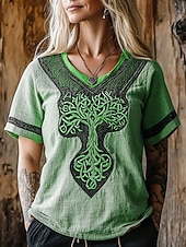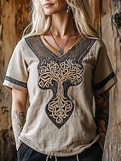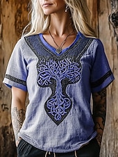 More information about Women's T Shirt Graphic Geometric Vintage Stylish Classic Short Sleeve V Neck Regular Tops Daily Weekend Vacation Wear Print Blue Purple Green Khaki Summer Spring Fall