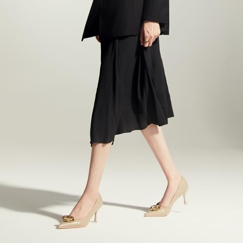 • Premium quality dress pumps: Experience exceptional craftsmanship and luxe aesthetics comparable to higher-priced designer heels. The signature metal buckle delivers an unmistakably upscale look. A must-have capsule wardrobe investment for photo-ready elegance in professional and semi-formal settings. (True to size; some find snug - consider sizing up for a roomier fit or if wearing hosiery)